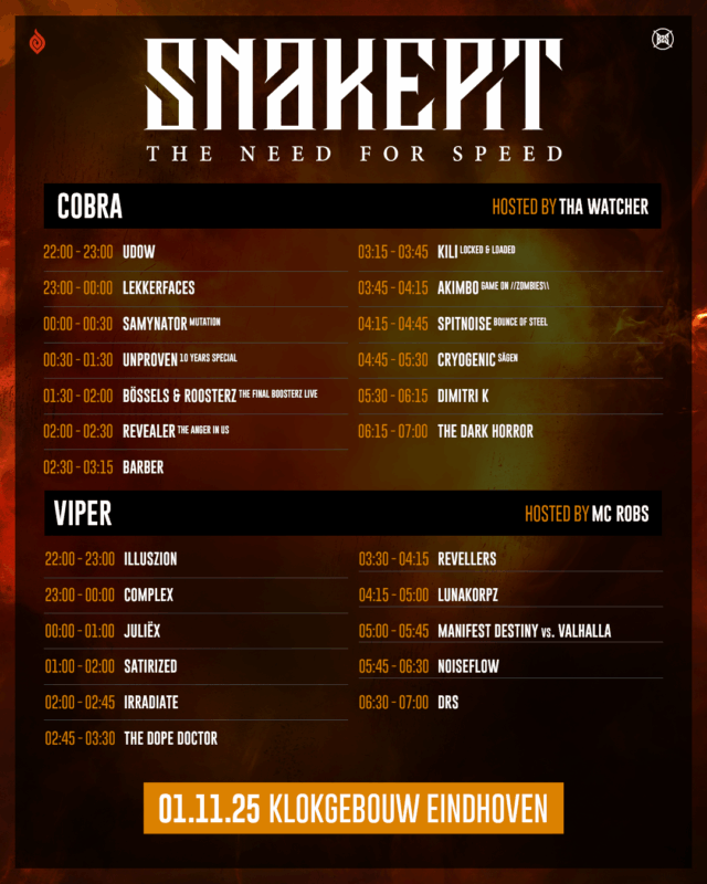 Dit is de timetable for Snakepit 2025: